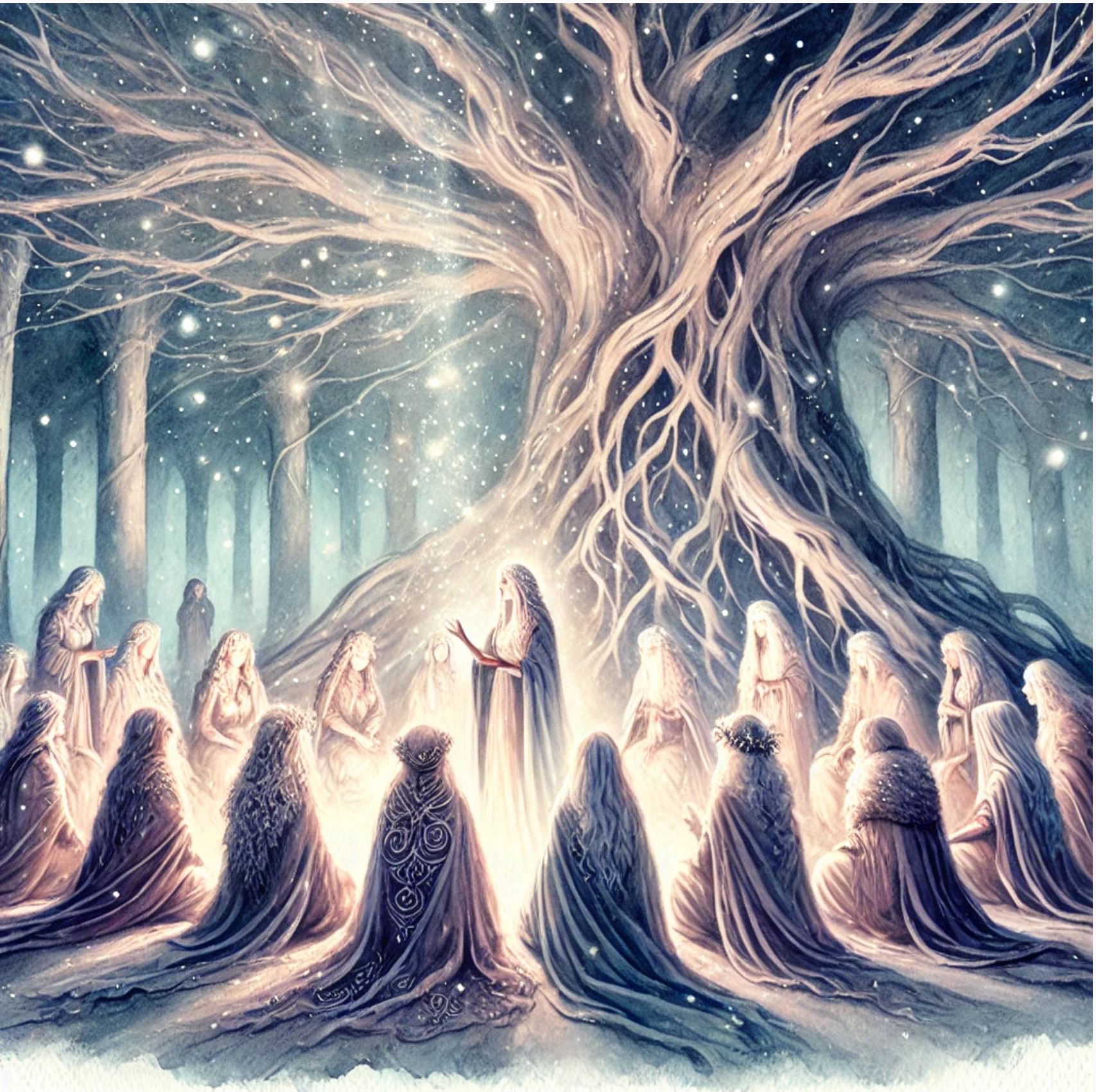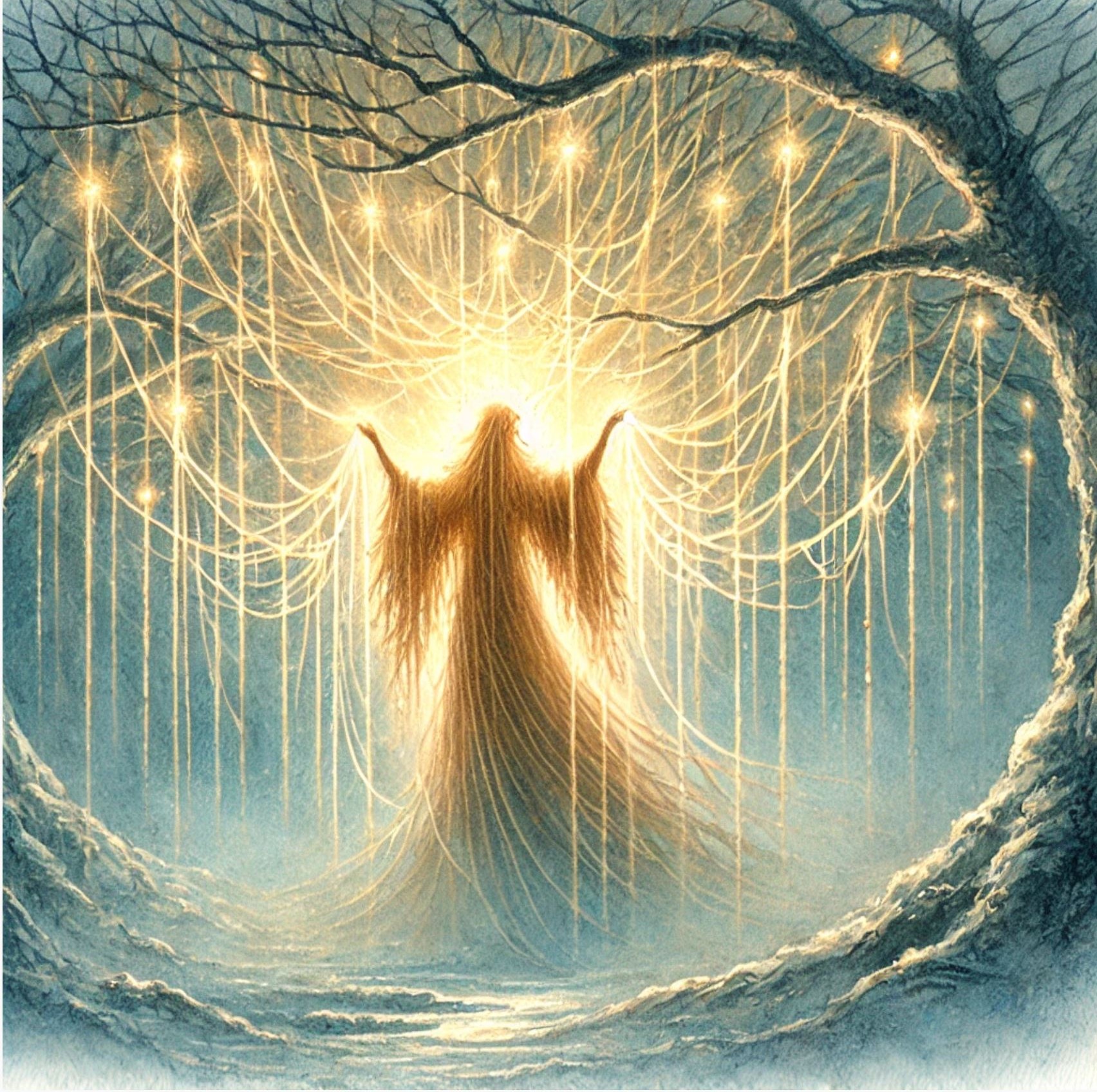 Figure issue du folklore nordique, Berchta se relie à de nombreuses représentations féminines de l’hiver. Ma Berchta, à moi, s’est façonnée au fil du temps : un mélange de mes contes, de mythes anciens, d’ombres protectrices et de forces vengeresses, une psychopompe ambivalente qui accompagne autant qu’elle défie.